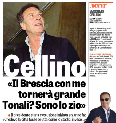 L'edizione odierna de "La Gazzetta dello Sport" ha deciso di riportare alcune delle dichiarazioni rilasciate dal presidente del Brescia Massimo...