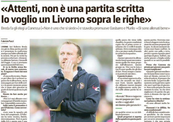 "Ieri Roberto Breda era già in clima partita perché si è presentato in conferenza stampa con l’abito ufficiale della società....