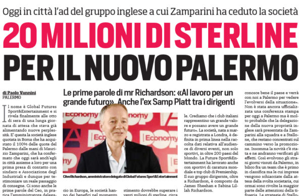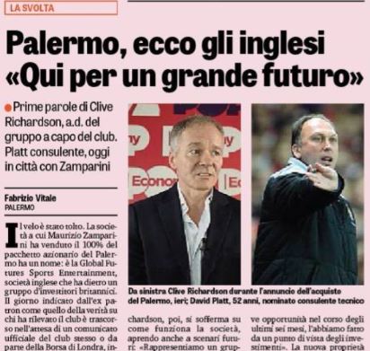 Nella serata di ieri è uscito il nome del nuovo proprietario del Palermo, si tratta della società Futures Sports&Entertainment. Nome che...