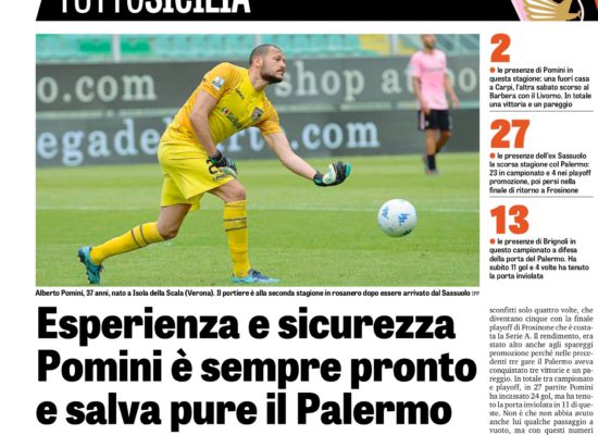 Intervenuto ai microfoni de "Il Corriere dello Sport", il portiere rosanero Alberto Pomini ha parlato così: «Più che per me,...