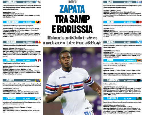 "Nel giro di attaccanti tra le grandi d’Europa può entrare anche la Sampdoria: il Borussia Dortmund ha infatti individuato Duvan...