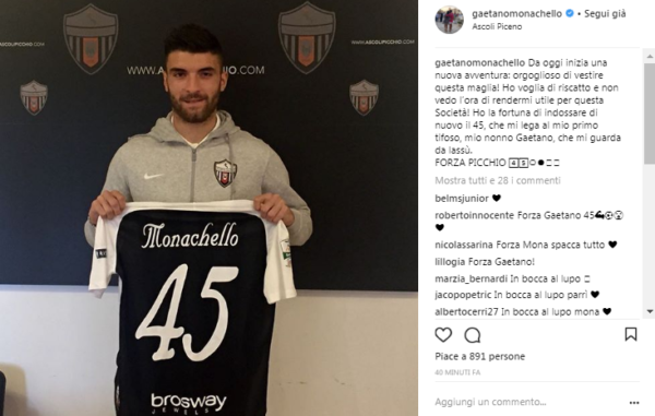 Gaetano Monachello da ieri è un calciatore dell'Ascoli. L'attaccante sul proprio profilo Instagram si è detto orgoglioso di vestire la...
