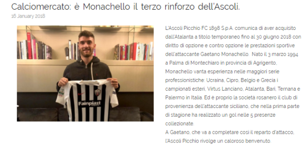 Il calciatore Gaetano Monachello può considerarsi un nuovo calciatore dell'Ascoli. L'attaccante che in questa prima parta di stagione è stato...
