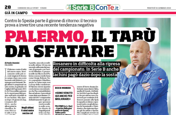 "Il Palermo contro il tabù del nuovo anno. Storicamente nelle più recenti stagioni il ritorno in campo dopo una sosta...