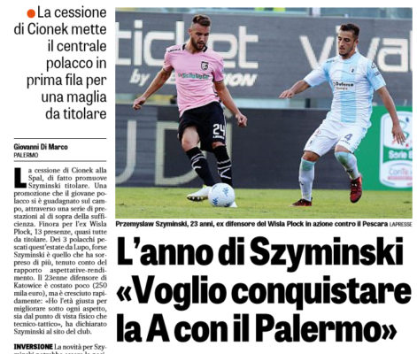 "La cessione di Cionek alla Spal, di fatto promuove Szyminski titolare. Una promozione che il giovane polacco si è guadagnato...