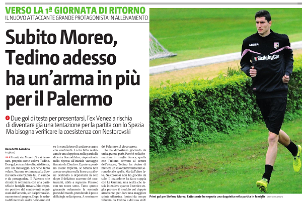 L'edizione odierna de "Il Giornale di Sicilia" ha analizzato l'arrivo di Stefano Moreo. L'attaccante potrebbe già scendere in campo contro...