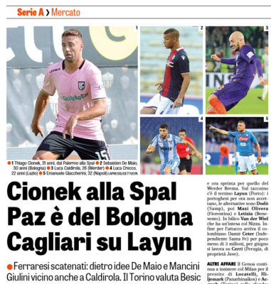 L’edizione odierna de “Il Corriere dello Sport” ha fatto il punto sul mercato in serie B: "Il prossimo volto nuovo...