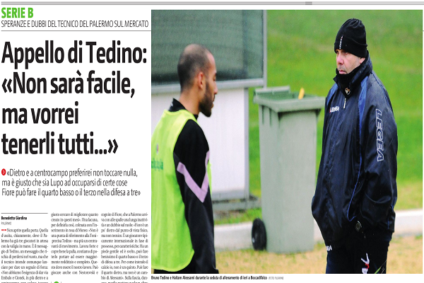 Giornale di Sicilia: “Verso Spezia-Palermo: rebus sulla fascia per Tedino”