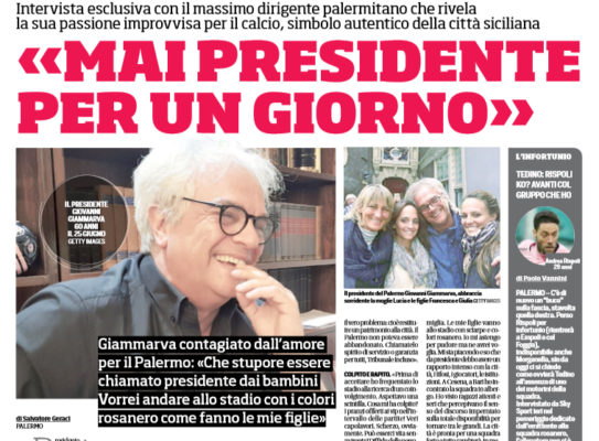L’edizione odierna de “Il Corriere dello Sport” ha realizzato un’intervista al presidente del Palermo Giovanni Giammarva. Ecco un estratto: «Intanto,...