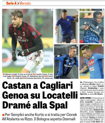 L’edizione odierna de “La Gazzetta dello Sport” ha fatto il punto sulle trattativa di calciomercato in serie A: "Giornata di...