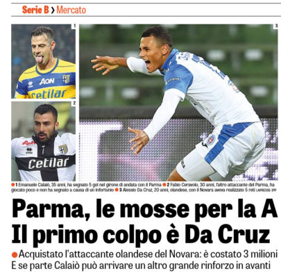 Grande colpo in attacco del Parma. La società emiliana si è aggiudicata Alessio Da Cruz del Novara. Attaccante di 21...