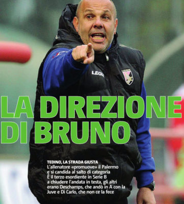 Il tecnico del Palermo Bruno Tedino guida i suoi nella "direzione giusta". La direzione è la promozione in A senza...