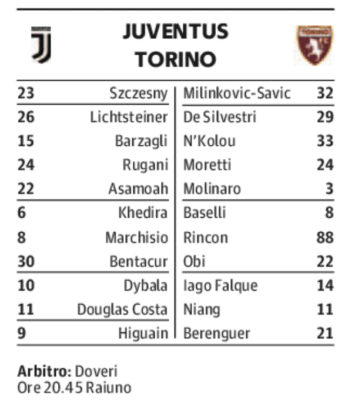 L'edizione odierna de "La Repubblica" ha stilato le probabili formazioni del derby della Mole in programma questa sera in Tim...