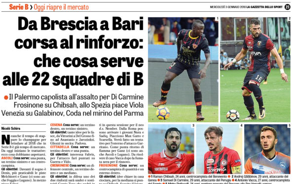 Da oggi inizia il calciomercato di riparazione 2017/18. L'edizione odierna de "La Gazzetta dello Sport" ha fatto il punto sulla...