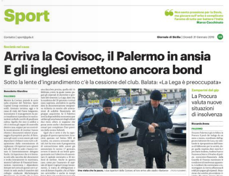 L'edizione odierna del "Giornale di Sicilia" approfondisce gli ultimi eventi relativi al caos attorno al Palermo, con l'arrivo della Covisoc...
