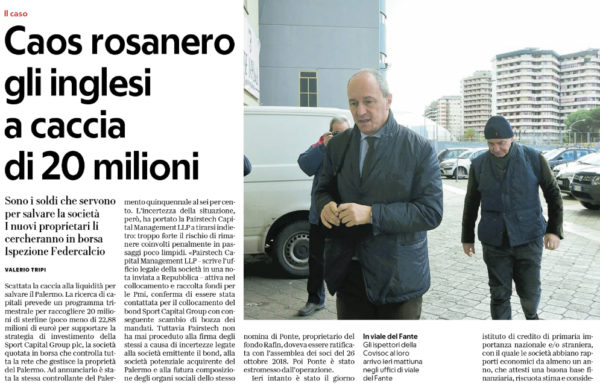 Giornale di Sicilia: “Arriva la Covisoc, il Palermo in ansia. Facile incontra i dipendenti…”
