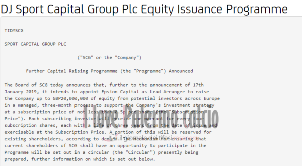 Attraverso una nota pubblicata sul sito di NEX Exchange, la Sport Capital Group ha diffuso una nota nella quale comunica...