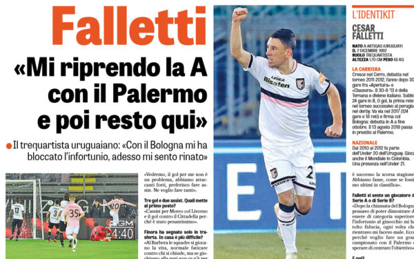 L’edizione odierna de “La Gazzetta dello Sport” ha intervistato Cesar Falletti. Ecco un estratto dell’intervista all’attaccante rosanero: "Tre gol e...