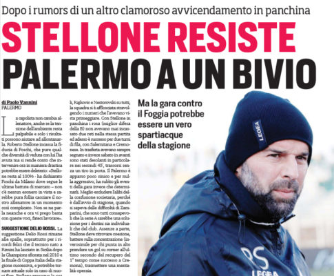 L'edizione odierna del "Corriere dello Sport" parla del futuro del tecnico del Palermo Roberto Stellone che con il Foggia non...