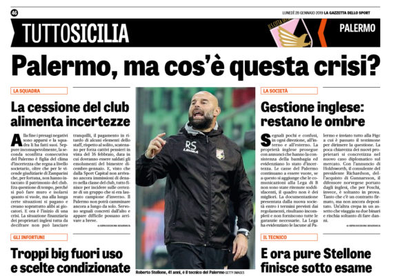 L'edizione odierna della "Gazzetta dello Sport" parla della situazione di crisi in casa Palermo. Ecco quanto si legge: "Alla fine...