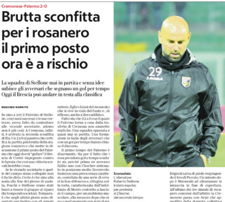 Repubblica: “Brutta sconfitta per i rosanero, il primo posto ora è a rischio. Gli inglesi continuano a delegittimare il lavoro di Foschi…”