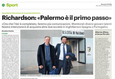 L'edizione odierna del "Giornale di Sicilia" si sofferma sulle ultime dichiarazioni di Clive Richardson, neo presidente del Palermo, evidenziando come...
