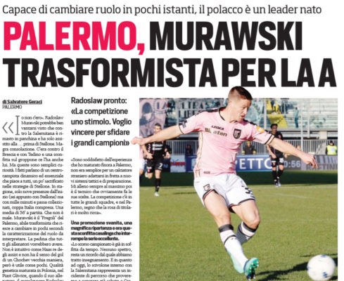 L'edizione odierna de "Il Corriere dello Sport" riporta un'intervista a Radoslaw Murawski, centrocampista del Palermo. Ecco quanto riportato: "A Cremona,...