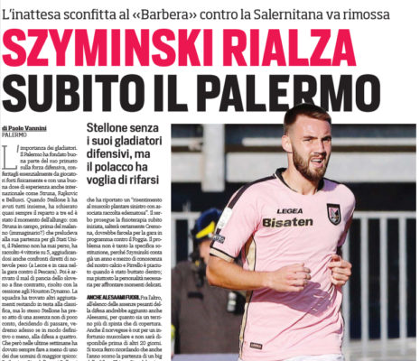 Corriere dello Sport: “Szyminski rialza subito il Palermo”
