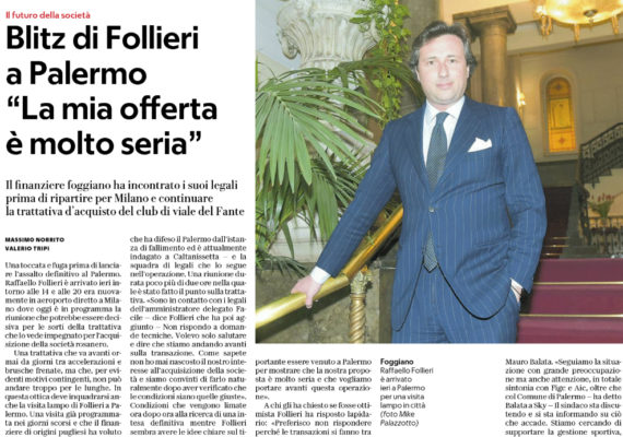 Giornata ricca di incontri con enti e istituzioni per Raffaello Follieri, potenziale acquirente del Palermo. Stando a quanto riferito da...