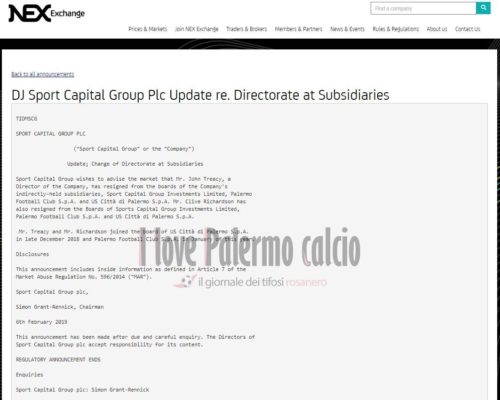 Palermo: Sport Capital Group annuncia le dimissioni Richardson e Treacy (FOTO)