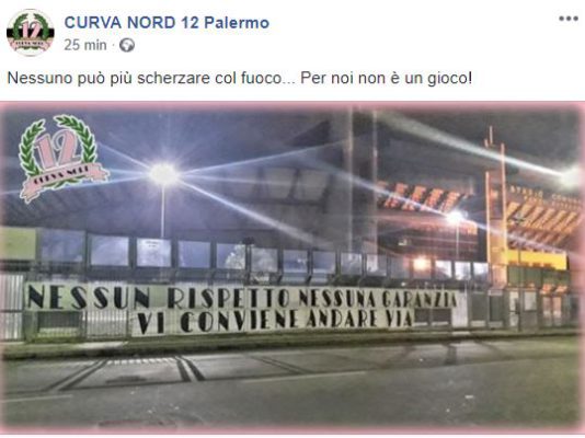 La "Curva Nord 12", uno dei gruppi ultrà più vicini al Palermo, ha esposto uno striscione davanti lo stadio "Renzo Barbera",...