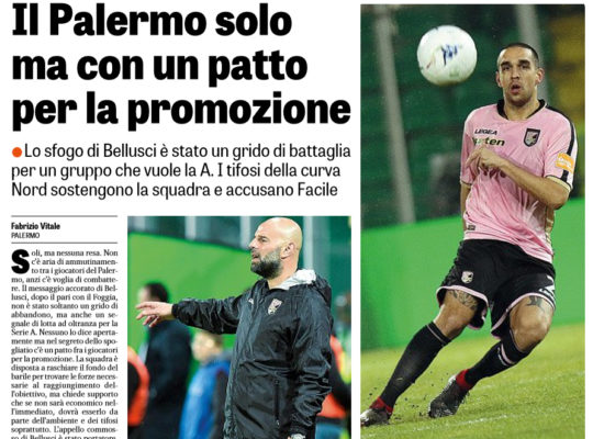 L'edizione odierna de "La Gazzetta dello Sport" si sofferma sull'atteggiamento mostrato dai calciatori del Palermo, che avrebbero stabilito un patto...