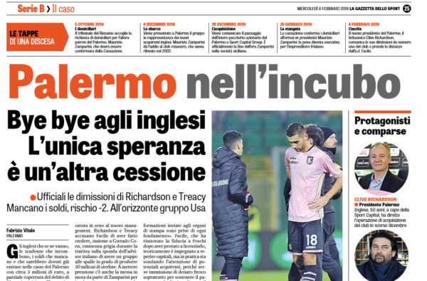 L'edizione odierna de "La Gazzetta dello Sport" si sofferma sulla fuga della proprietà inglese da Palermo. Con lo spettro del...