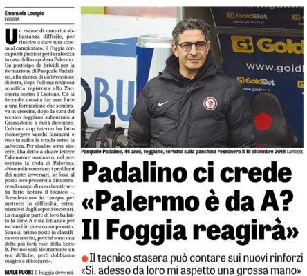 L'odierna edizione de "La Gazzetta dello Sport", racconta le ultime notizie provenienti da Foggia in vista della gara di questa...