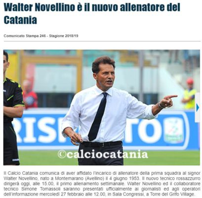 Attraverso il proprio sito ufficiale, il Catania calcio, annuncia di aver assunto Walter Novellino come allenatore della prima squadra. Di...
