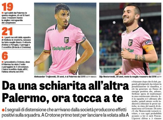 L'edizione odierna della "Gazzetta dello Sport", parla della situazione del Palermo. Adesso tocca ai rosanero, che domani affronteranno il Crotone...