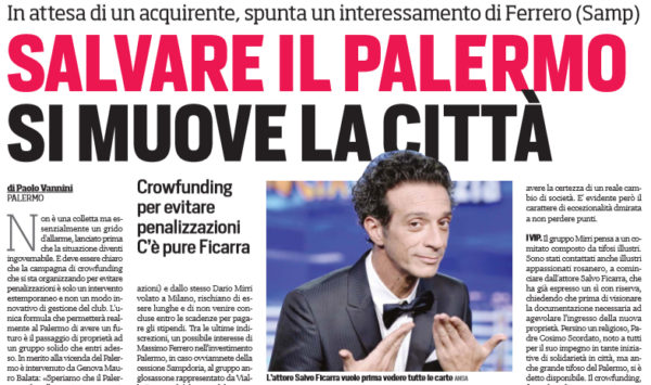 L'edizione odierna del "Corriere dello Sport", parla dell'iniziativa di crowdfunding promossa dall'imprenditore Mirri per evitare penalizzazioni che potrebbero scattare qualora...