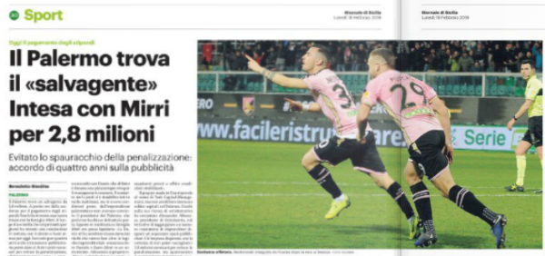 L'edizione odierna del "Giornale di Sicilia", parla dell'accordo trovato al fotofinish tra Rino Foschi e l'imprenditore palermitano Dario Mirri. A...