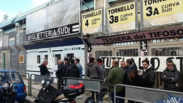 Lunghe code ai botteghini dello stadio Renzo Barbera dove i tifosi rosanero stanno acquistando i tagliandi per assistere al match...