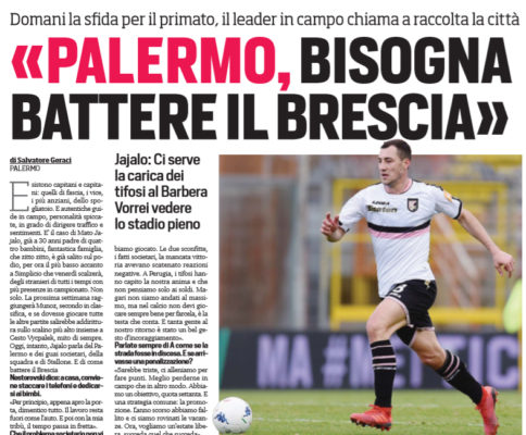 L'edizione odierna del "Corriere dello Sport" riporta un'intervista a Mato Jajalo, centrocampista del Brescia. Contro il Brescia, in ballo primato...