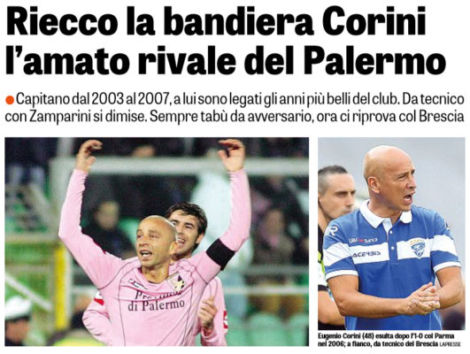 L'edizione odierna della "Gazzetta dello Sport" si sofferma sul ritorno al "Barbera" di Eugenio Corini, ancora una volta da avversario....