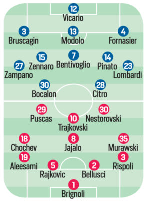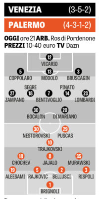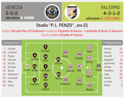 In alto le probabili formazioni di Venezia-Palermo, a cura de "La Nuova Venezia".