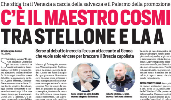 L'edizione odierna del "Corriere dello Sport" parla della sfida di questa sera tra Venezia e Palermo. Stellone affronterà il neo...