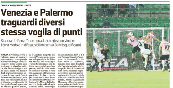 L'edizione odierna de "La Nuova Venezia" presenta il match di questa sera tra Venezia e Palermo. I lagunari provano a...