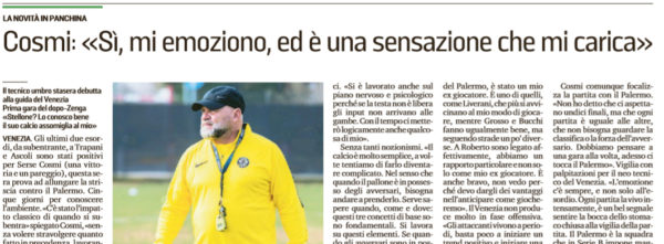 L'edizione odierna de "La Nuova Venezia", parla dell'esordio di stasera di Serse Cosmi sulla panchina del Venezia nel match contro...