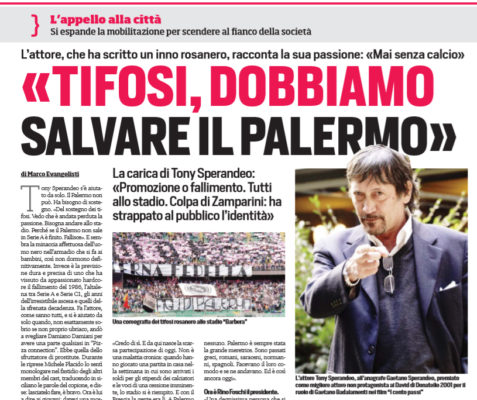 Tony Sperandeo s’è aiutato da solo. Il Palermo non può. Ha bisogno di sostegno. «Del sostegno dei tifosi. Vedo che...