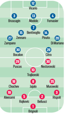 "Venezia Allenatore: Cosmi A disp.: 22 Lezzerini, 1 Facchin, 5 Coppolaro, 25 Cernuto, 17 Mazan, 8 Suciu, 16 Besea, 18 Segre,...