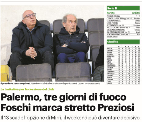 Foschi continua a lavorare per cedere il Palermo. In corsa sembra esserci ancora il gruppo capitanato da Enrico Preziosi che,...