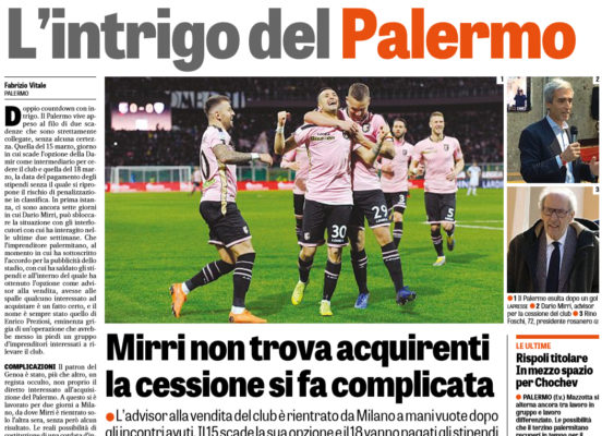 Gazzetta dello Sport: “L’intrigo del Palermo. Mirri non trova acquirenti, la cessione si fa complicata”