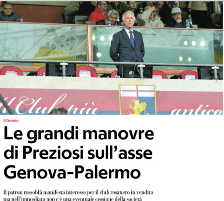 L'edizione odierna de "La Repubblica - Genova" si sofferma sull'interesse di Enrico Preziosi all'acquisizione del Palermo. Il patron, con due...